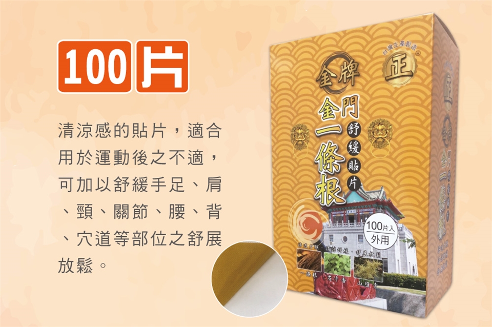 金門一條根舒緩貼片盒裝100片入-(橘)溫感