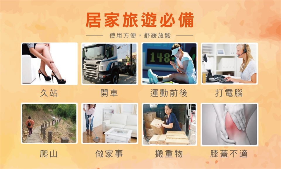 做家事、打電腦、爬山、開車舒展放鬆,增加清涼、舒適,具有保健之作用。