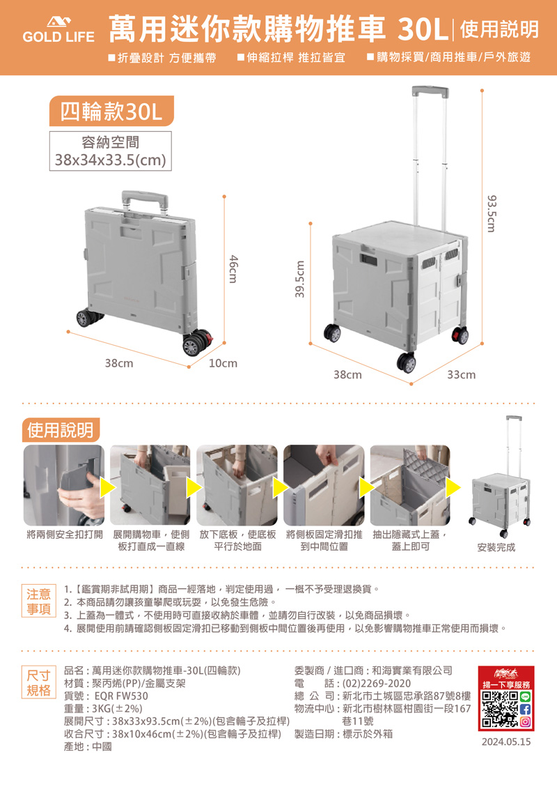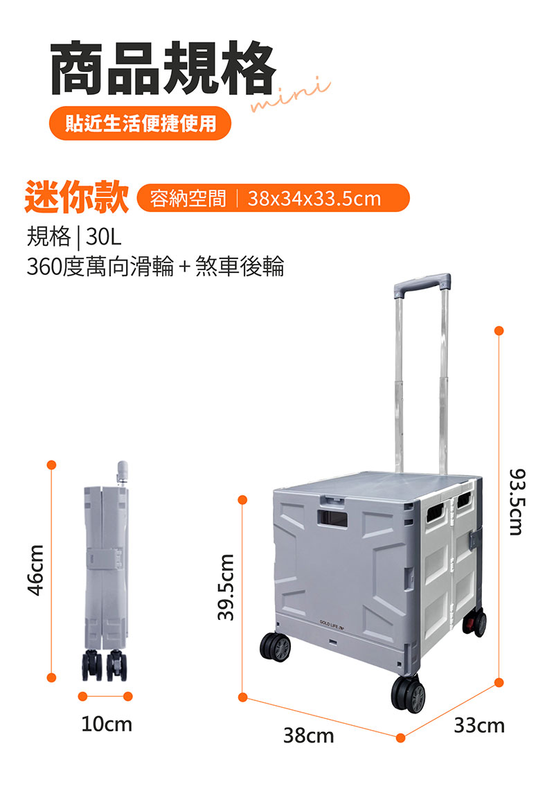 《GOLD LIFE》萬能迷你款購物推車(掀蓋式)-30L(迷你款-買就送加寬彈力繩顏色隨機)(10024929)