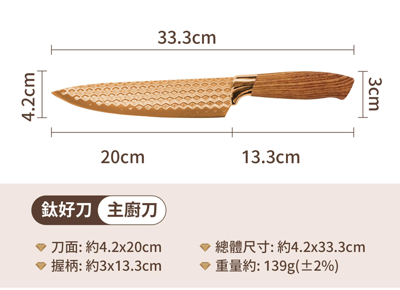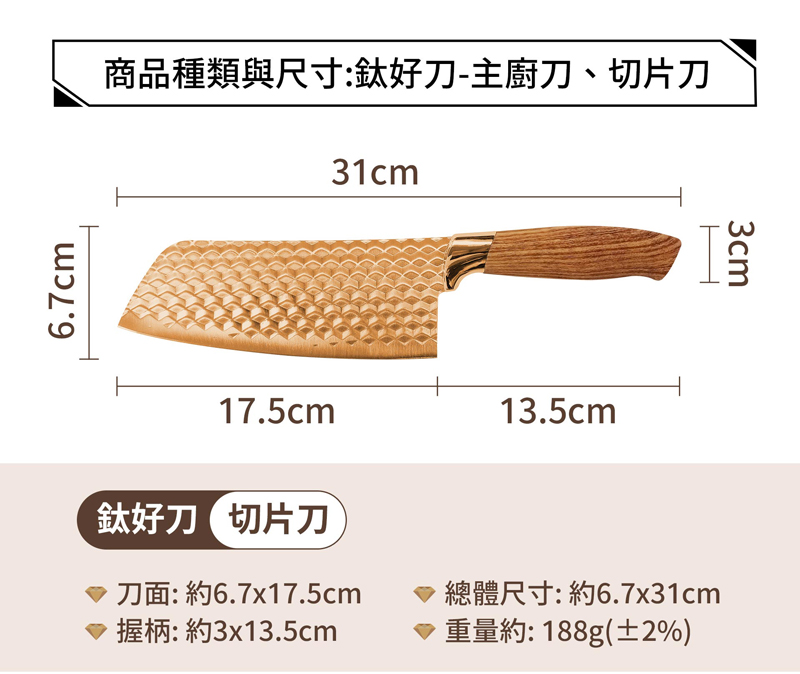 切片刀-188(±2%)/主廚刀-139(±2%)