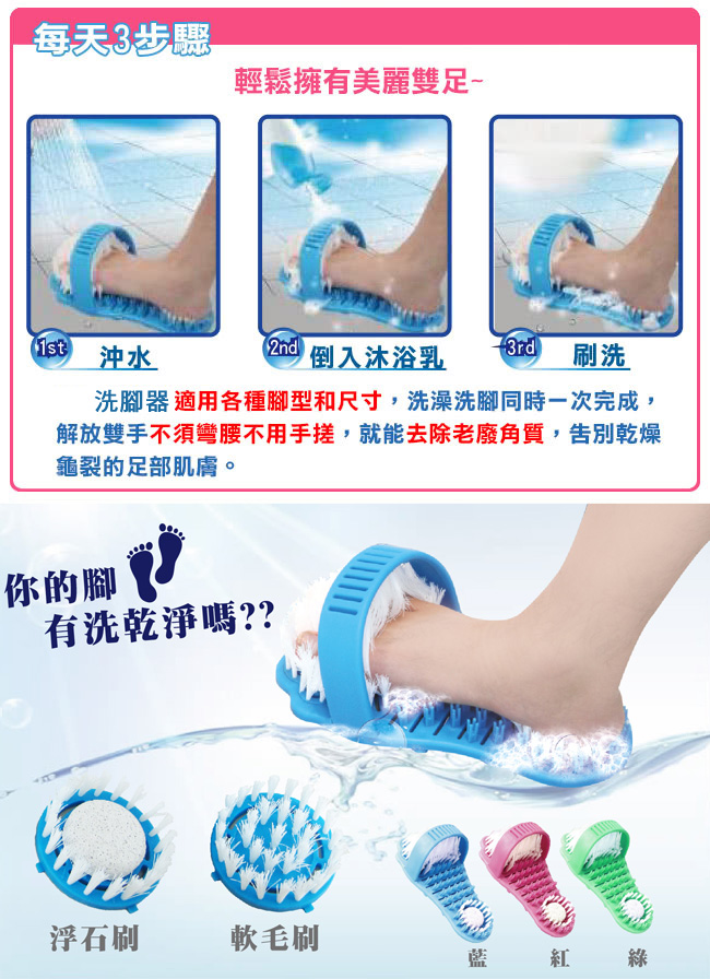 《闔樂泰》SPA沐浴鞋(1入組)-洗腳器x1,浮石刷x1,軟毛刷x1(10351205)