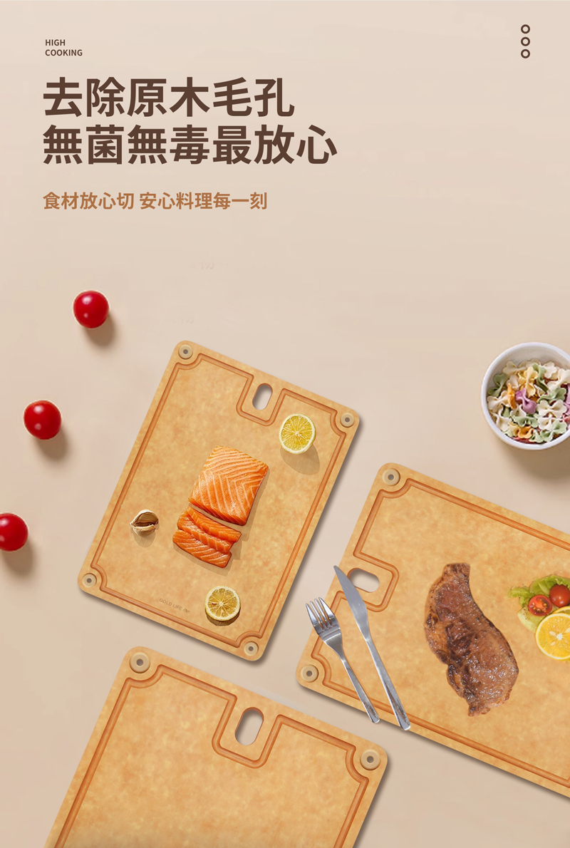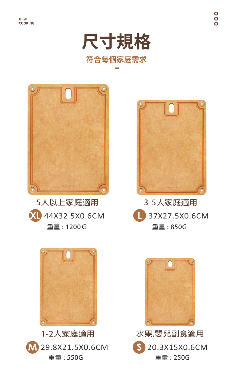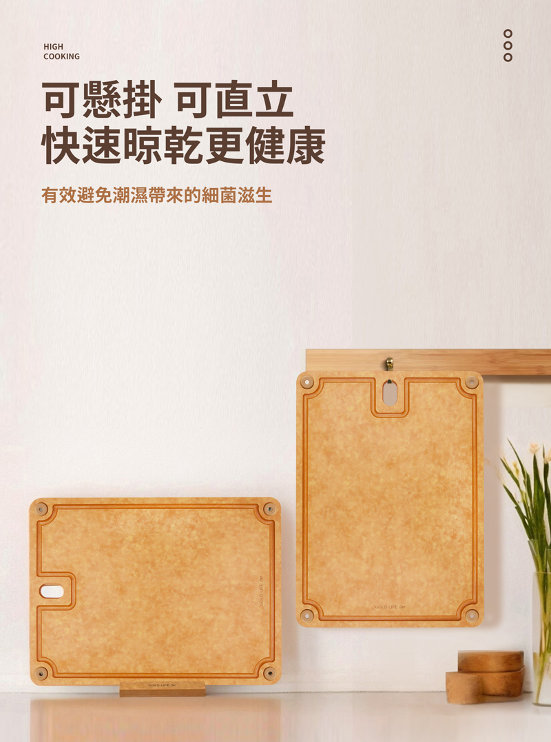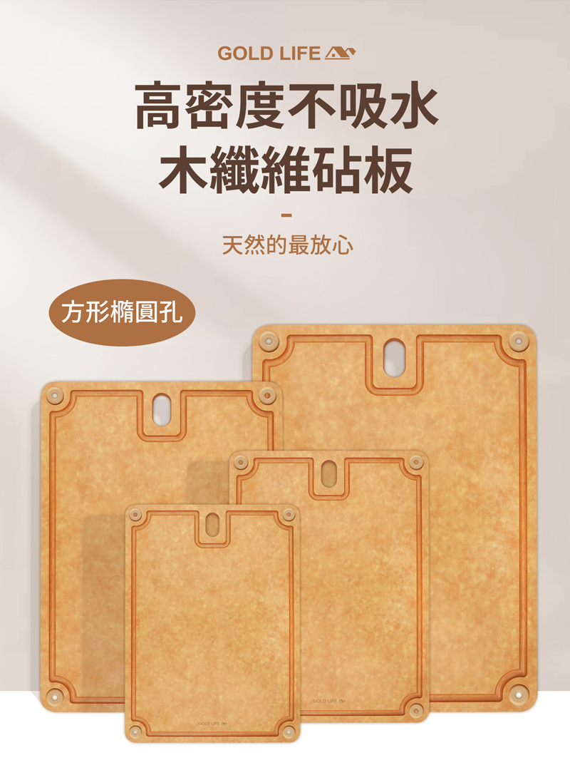 《GOLD LIFE》高密度不吸水木纖維砧板(方形款)XL+L+S+砧板架(10472634)