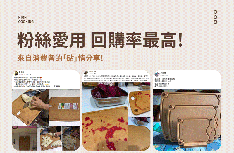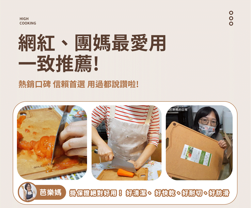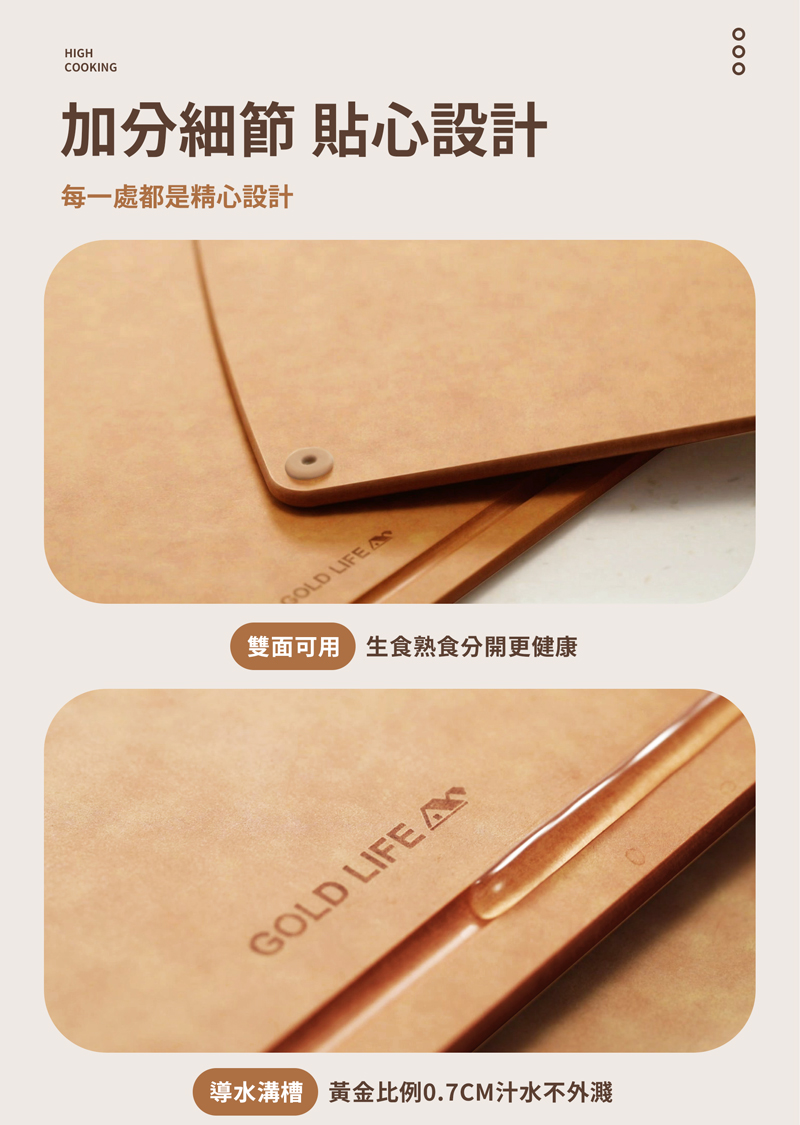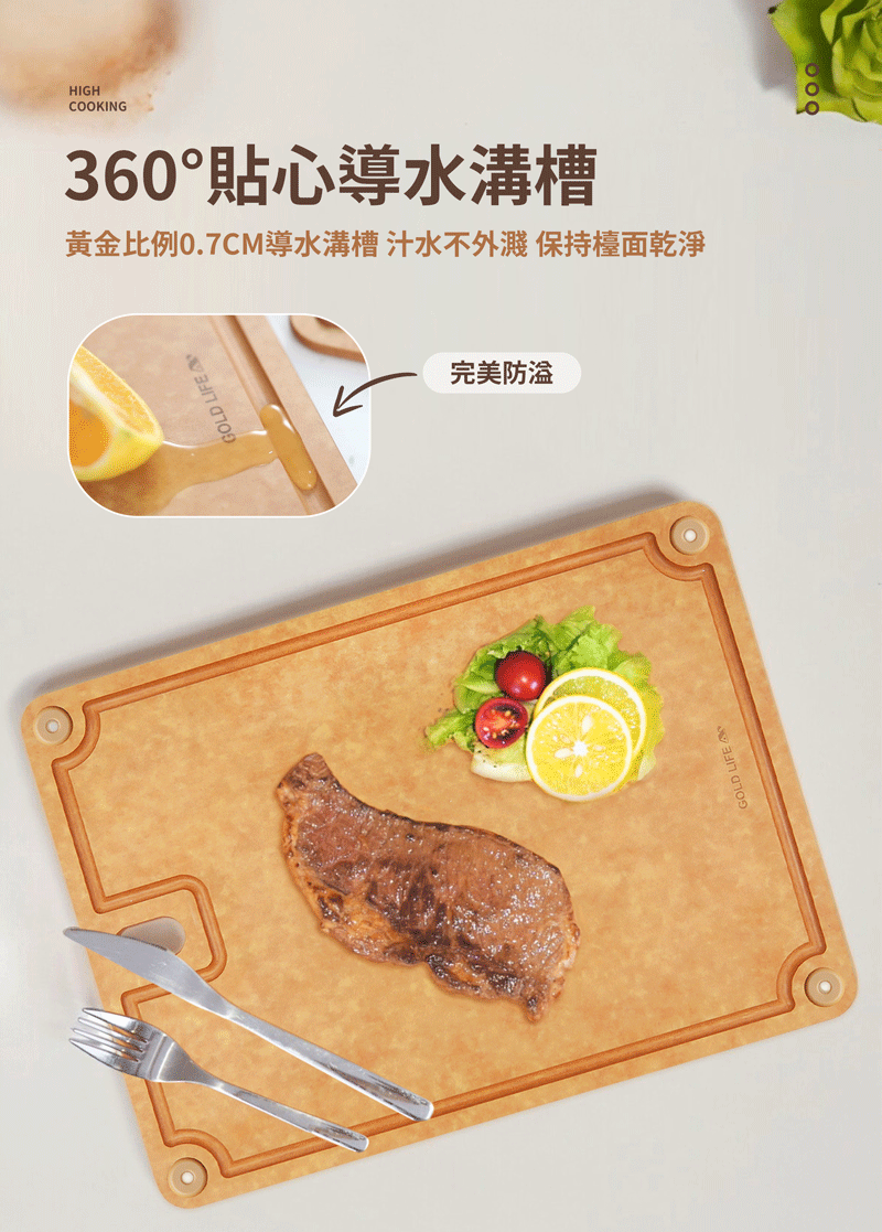 《GOLD LIFE》高密度不吸水木纖維砧板(方形款)XL+L+S+砧板架(10472634)