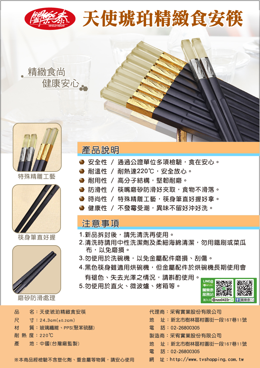S《闔樂泰》天使琥珀食安筷5雙入4854508