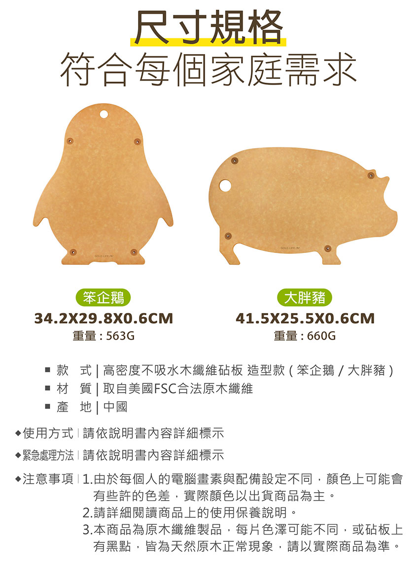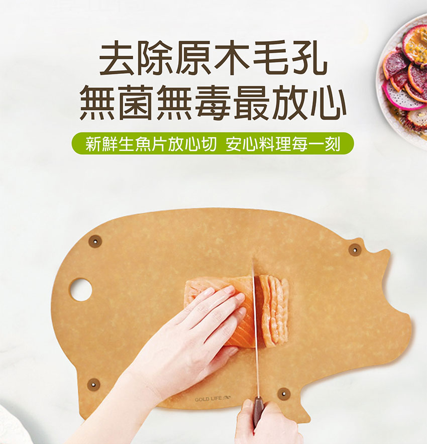 《GOLD LIFE》高密度不吸水木纖維砧板-動物造型(大胖豬)(1入)(8622579)