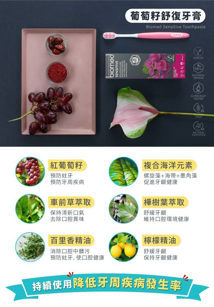 品牌:Biomed 品名:葡萄籽舒復牙膏 容量:100g |