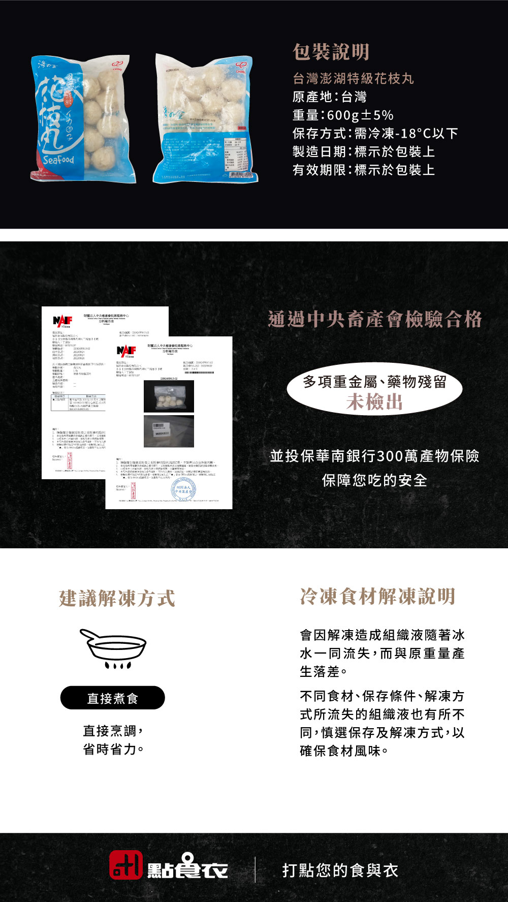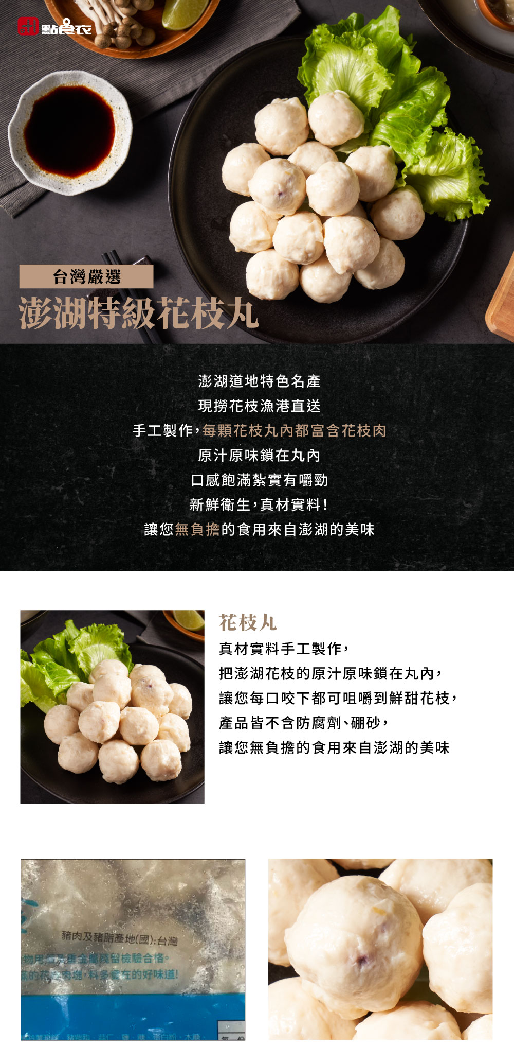 澎湖道地特色名產,以澎湖新鮮花枝製成,每顆花枝丸內都富含花枝肉,口感飽滿紮實有嚼勁,新鮮衛生,真材實料!漁港直送現撈花枝,並真材實料手工製作,讓澎湖花枝的原汁原味皆鎖在丸內,讓您每口咬下都可咀嚼到鮮甜花枝,產品皆不含防腐劑、硼砂,讓您無負擔的食用來自澎湖的美味