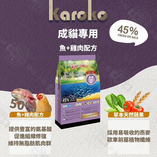 KAROKO 渴樂果 雞肉+鮭魚 成貓化毛配方飼料 1.2kg/7.7kg 室內貓 運動量大 成貓