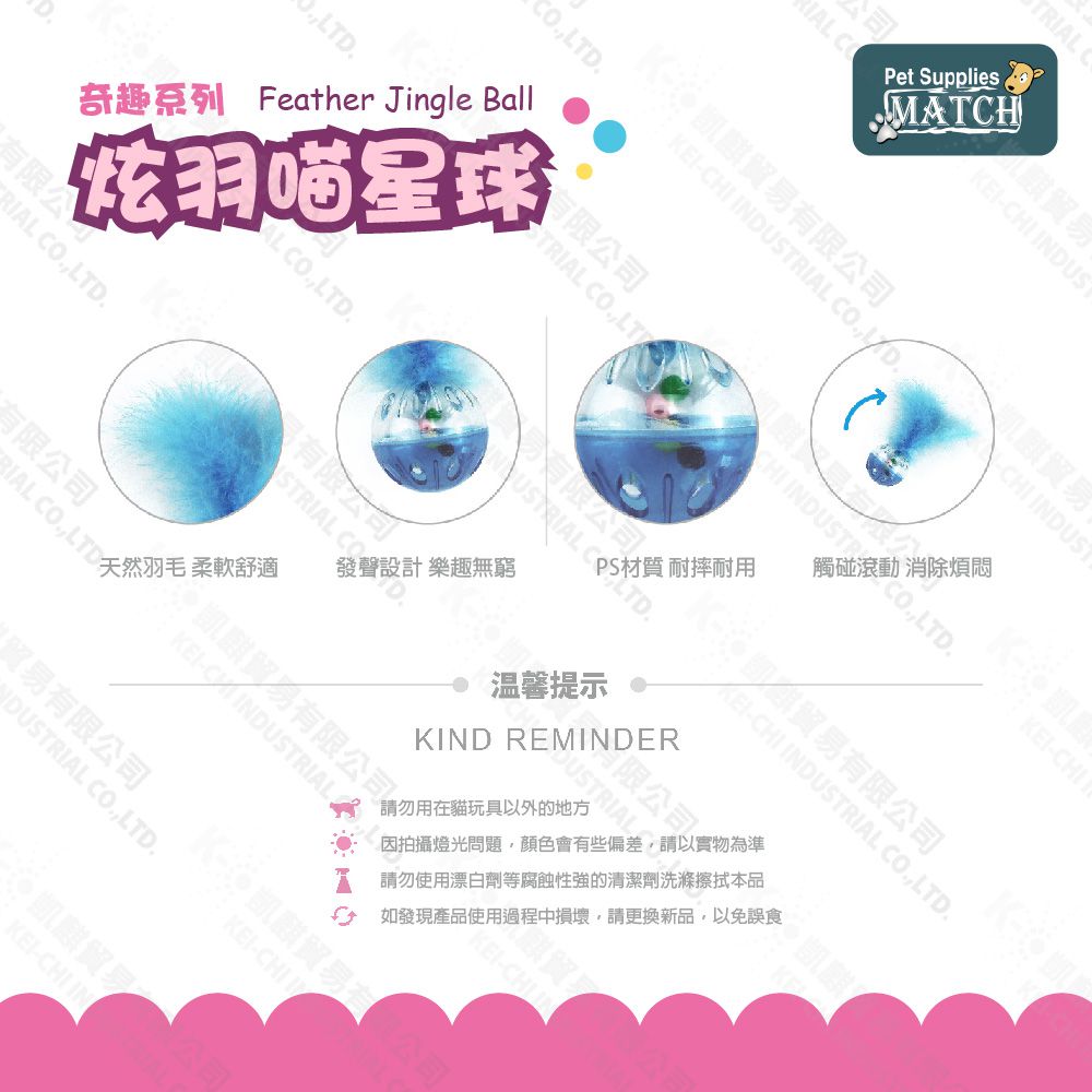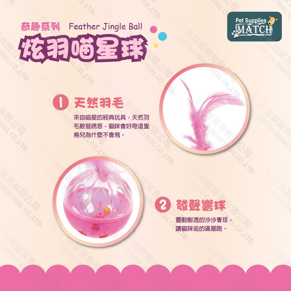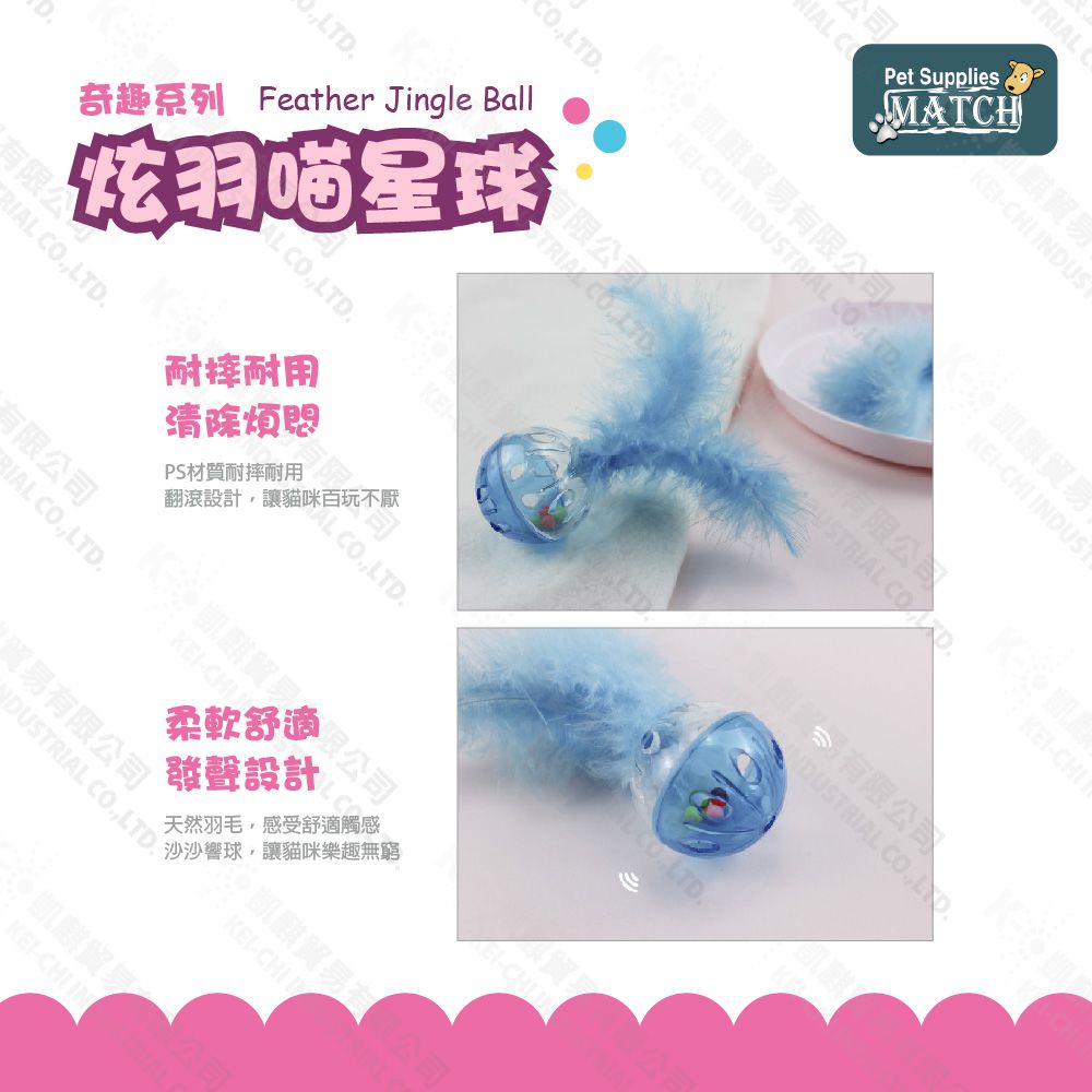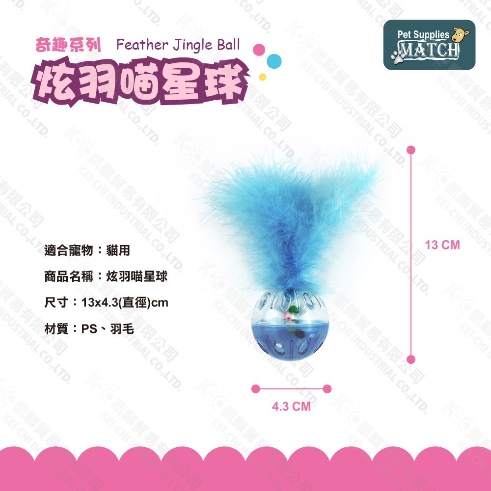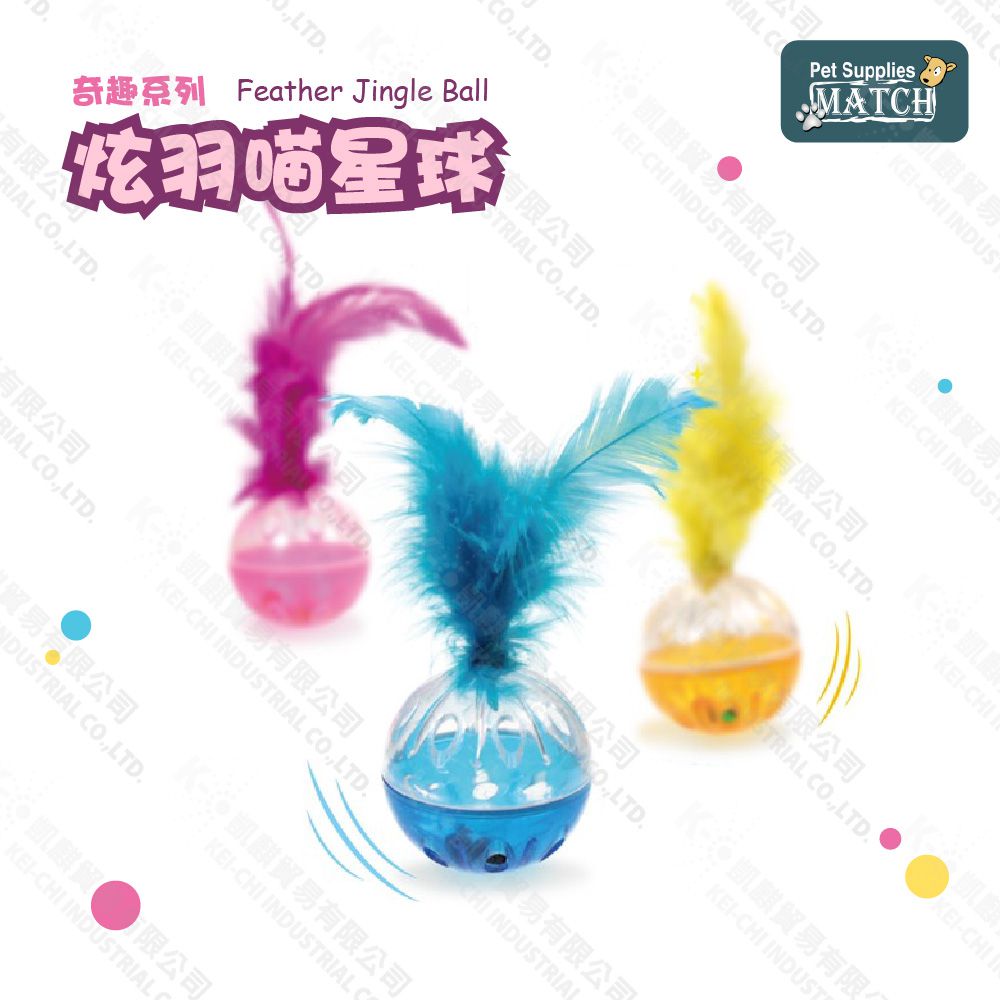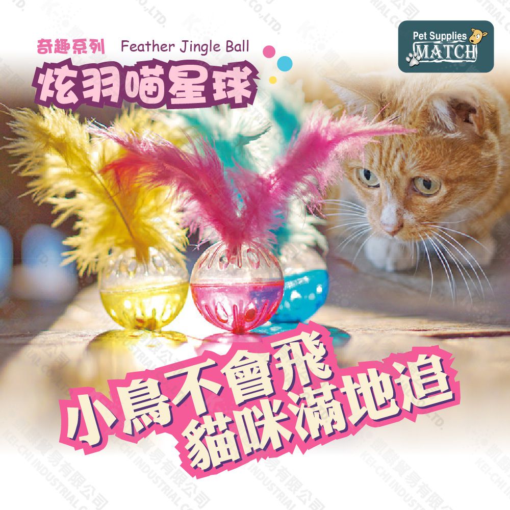 MATCH 炫羽喵星球 羽毛鈴鐺球 顏色隨機出貨 貓玩具 堅固耐用 滾動小球 逗貓 玩具球