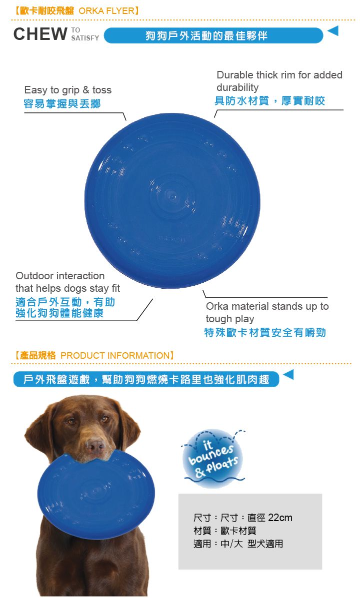 美國 Petstages 68498歐卡耐咬飛盤(大/靛藍) 寵物 耐咬 防水 狗玩具 安全 寵物玩具