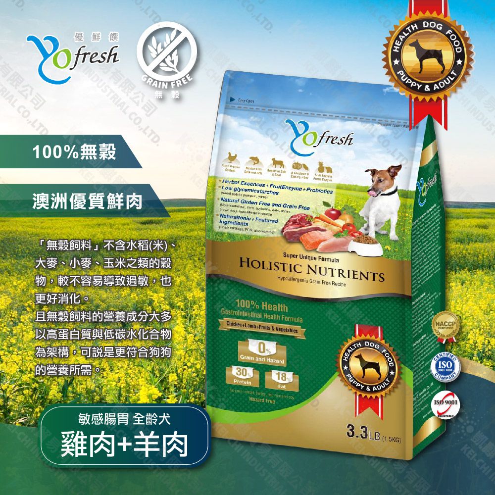 優鮮饌 YoFresh 無穀 狗飼料 1.5KG 羊肉 鮭魚 雞肉 鴨肉 田園蔬果 全齡犬 狗乾糧 低敏