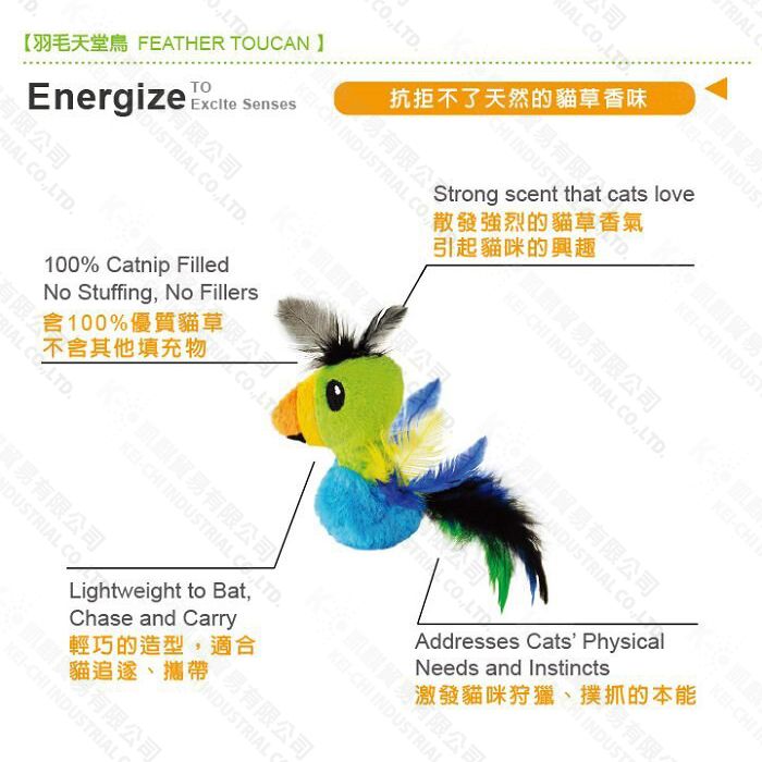 美國 Petstages 90019 羽毛天堂鳥-貓草玩具 寵物 貓玩具 寵物玩具 貓草 互動