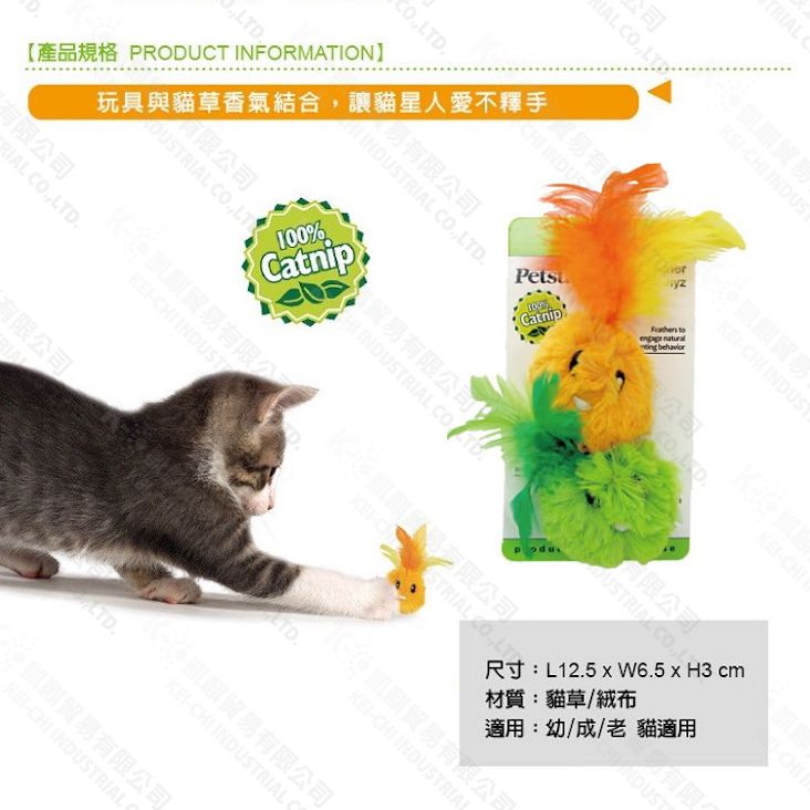 美國 Petstages 90023 羽毛小丸子-貓草玩具 寵物 貓玩具 寵物玩具 貓草 互動