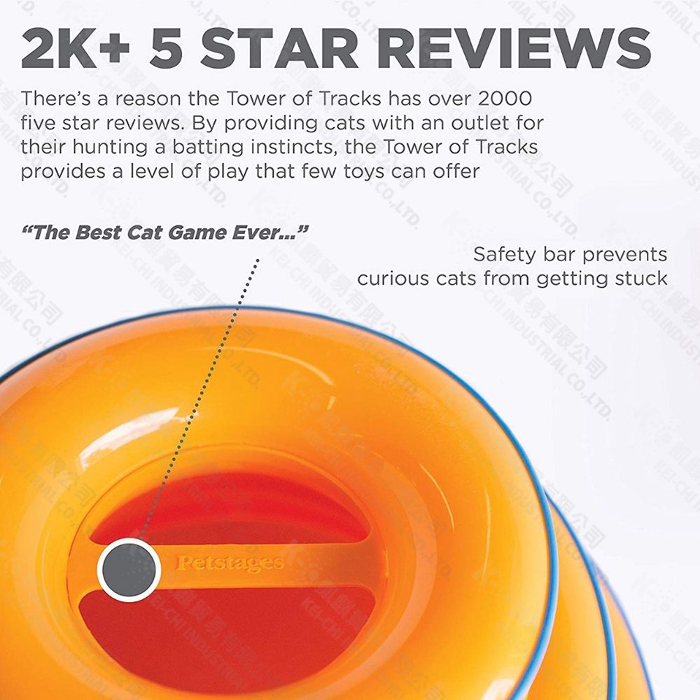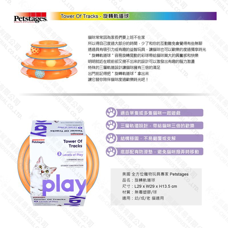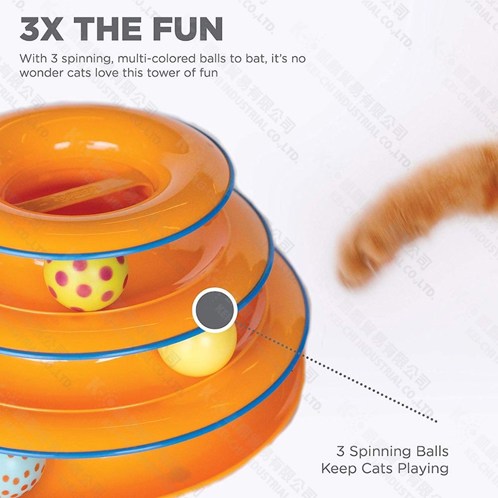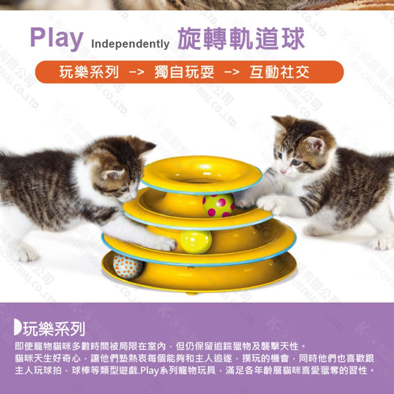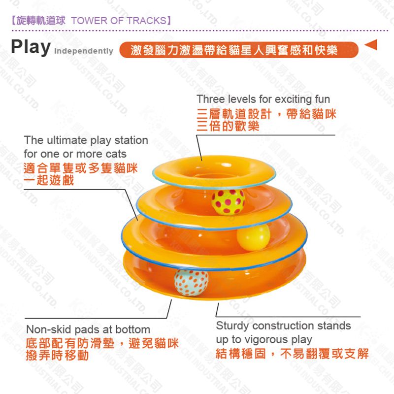 ● 可以排出三層旋轉球道,以積極發揮令貓咪興奮的玩耍樂趣