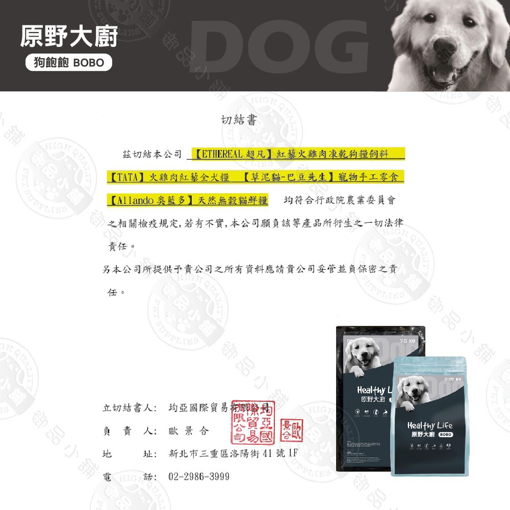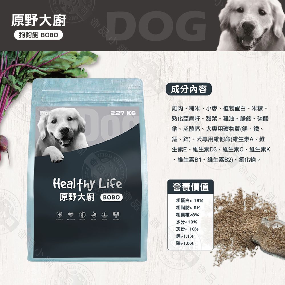 雞肉、糙米、小麥、植物蛋白、米糠、熟化亞麻籽、甜菜、雞油、膽鹼、磷酸鈉、泛酸鈣、犬專用礦物質(銅、鐵、錳、鋅)、犬專用維他命(維生素A、維生素E、維生素D3、維生素C、維生素K、維生素B1、維生素B2)、氯化鈉。