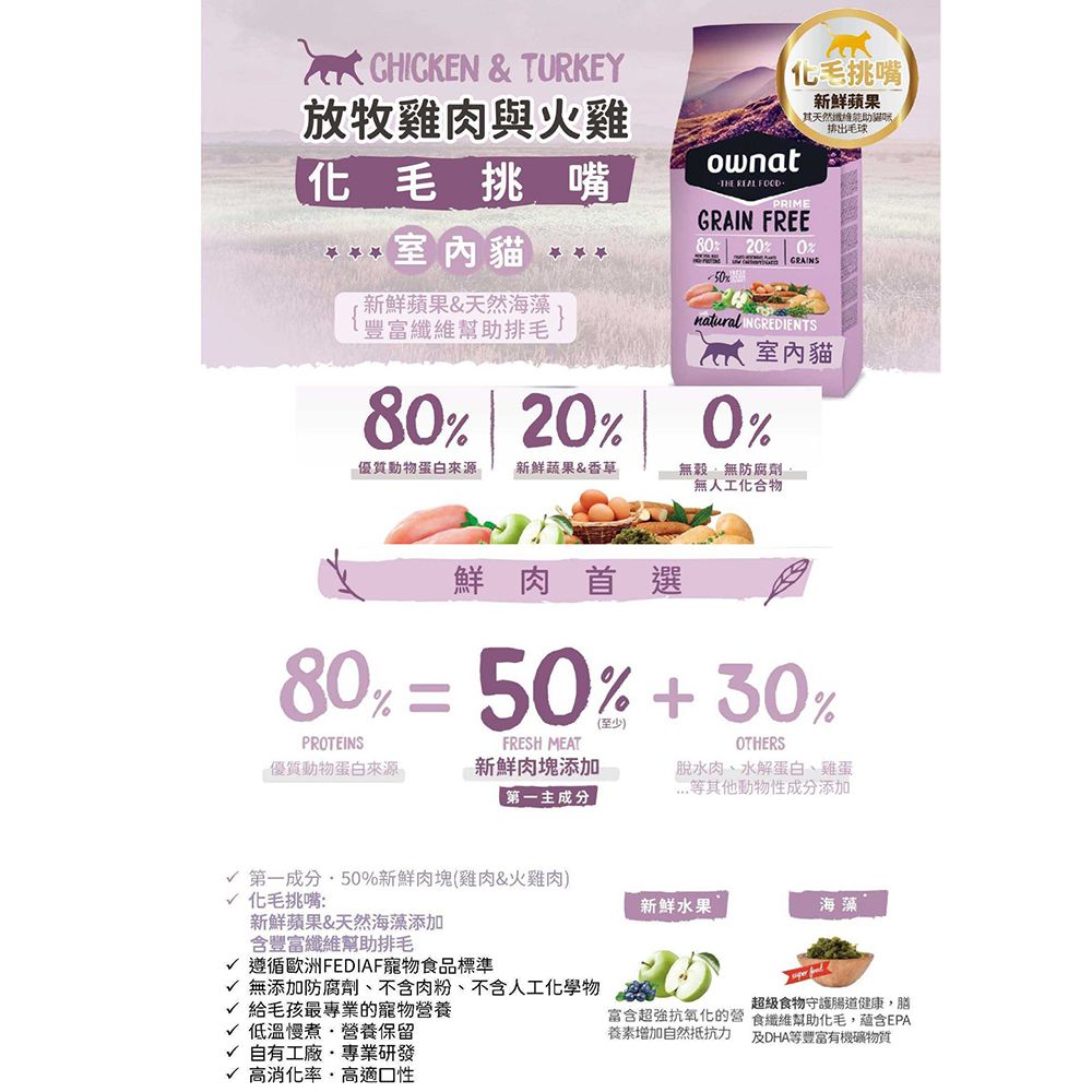 室內貓無穀全天然配方-放牧雞肉與火雞【化毛挑嘴】