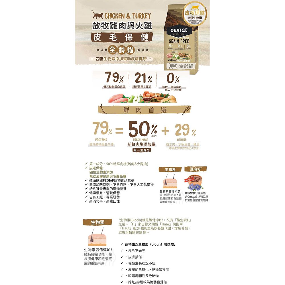 全齡貓無穀全天然配方-放牧雞肉與火雞【皮毛保健】