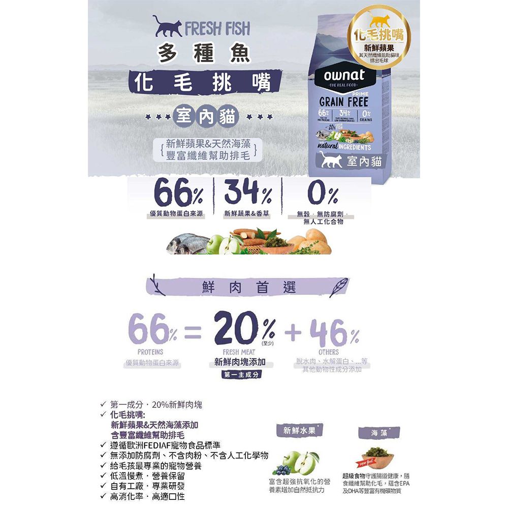 歐娜特 無穀天然鮮肉糧 全齡貓 室內貓 放牧雞肉與火雞 多種魚 腸胃保健 皮毛保健 化毛挑嘴 1.3.8kg