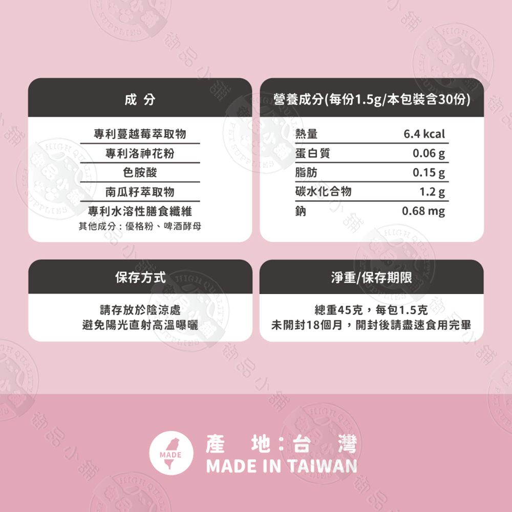 nu4PET 陪心寵糧 機能PLUS NO.1泌尿道紓壓保健粉30入/盒 蔓越莓精萃 洛神花維生素C 鎮靜情緒 犬貓用