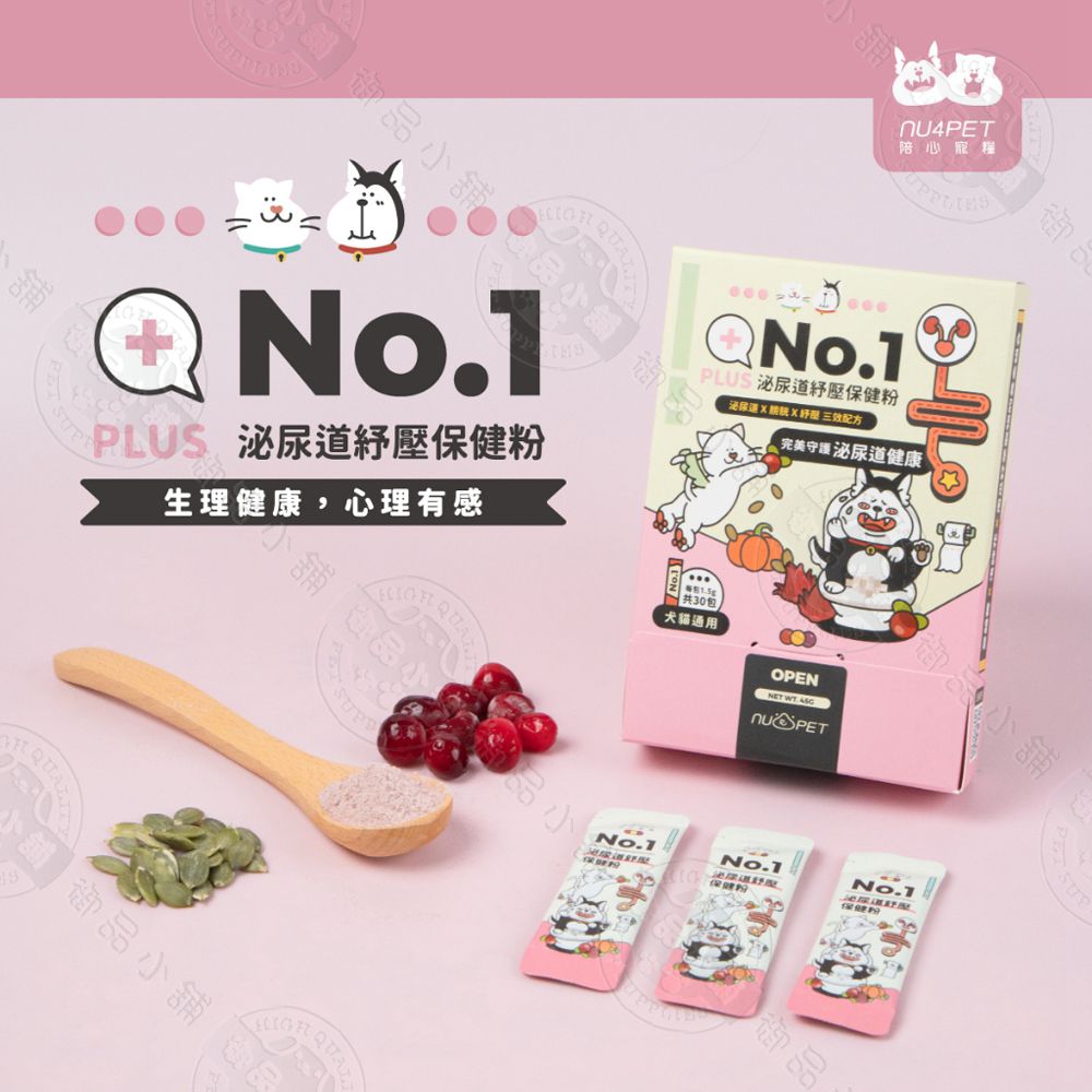 nu4PET 陪心寵糧 機能PLUS NO.1泌尿道紓壓保健粉30入/盒 蔓越莓精萃 洛神花維生素𝘾 鎮靜情緒 犬貓用