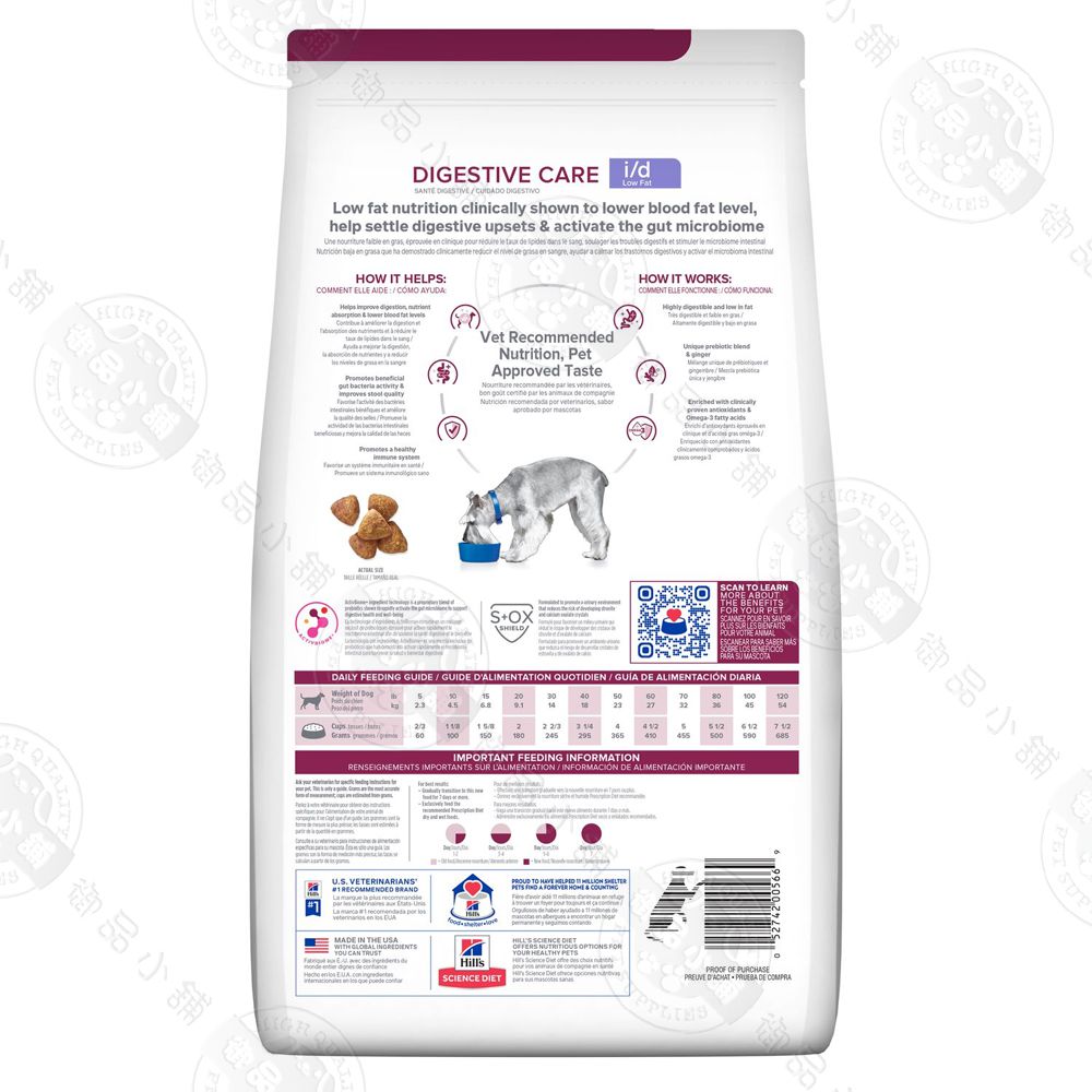 以AAFCO的程序進行動物餵食測試證實,希爾思®處方食品犬用i/d™ 低脂配方,可提供成犬所需的完整均衡營養。
