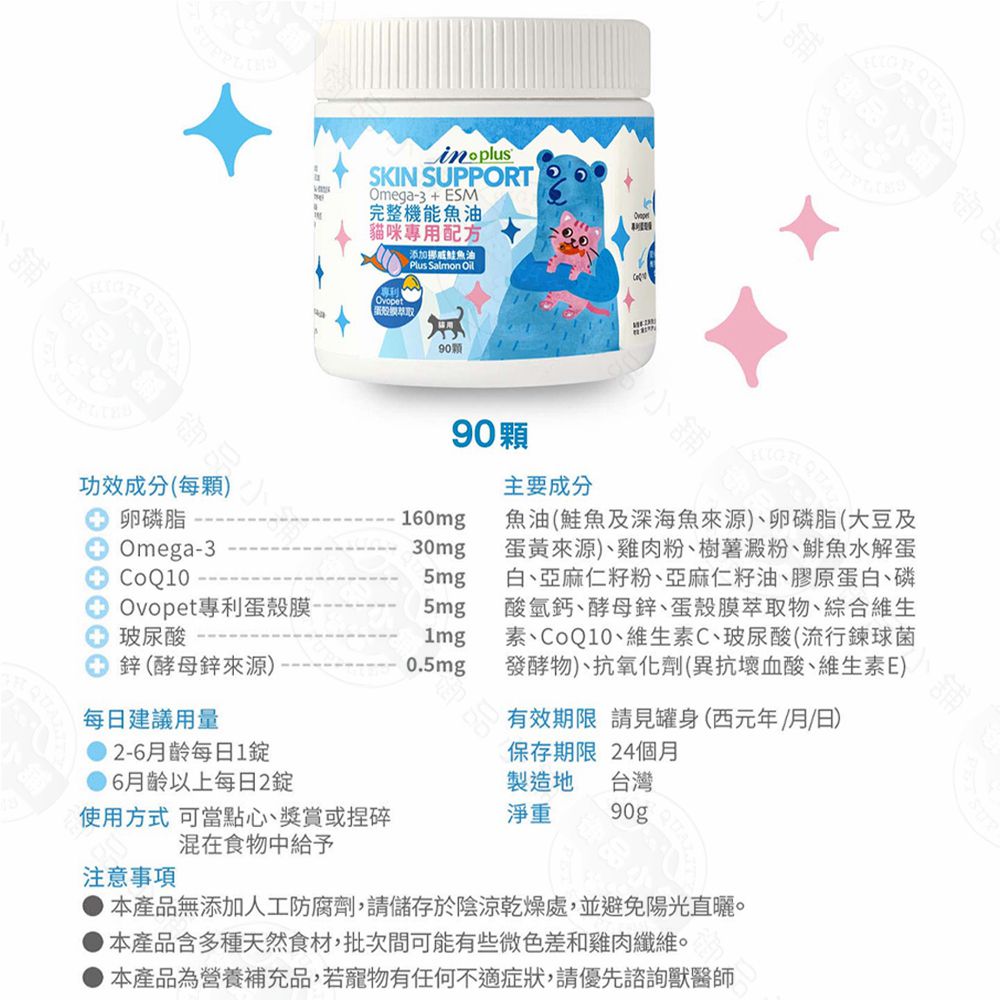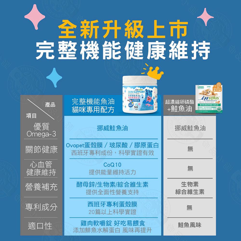IN-Plus 完整型機能魚油嚼錠 貓咪專用配方90顆 貓保健品 蛋殼膜 維護關節 皮膚心臟健康 滋養髮根 低敏無穀