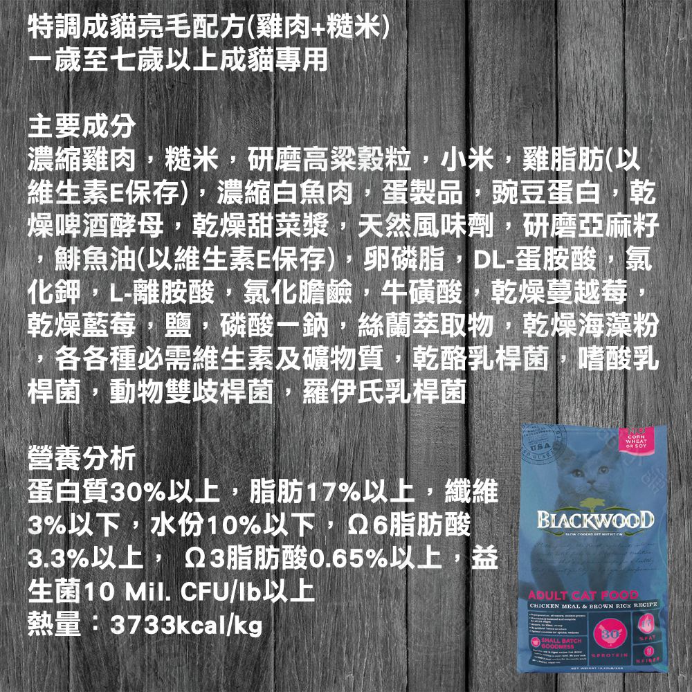 BLACKWOOD 柏萊富 貓用寵糧特調系列 4磅 益生菌 護膚亮毛 高含量亞麻油酸 泌尿道健康 維持抵抗力 全貓適用