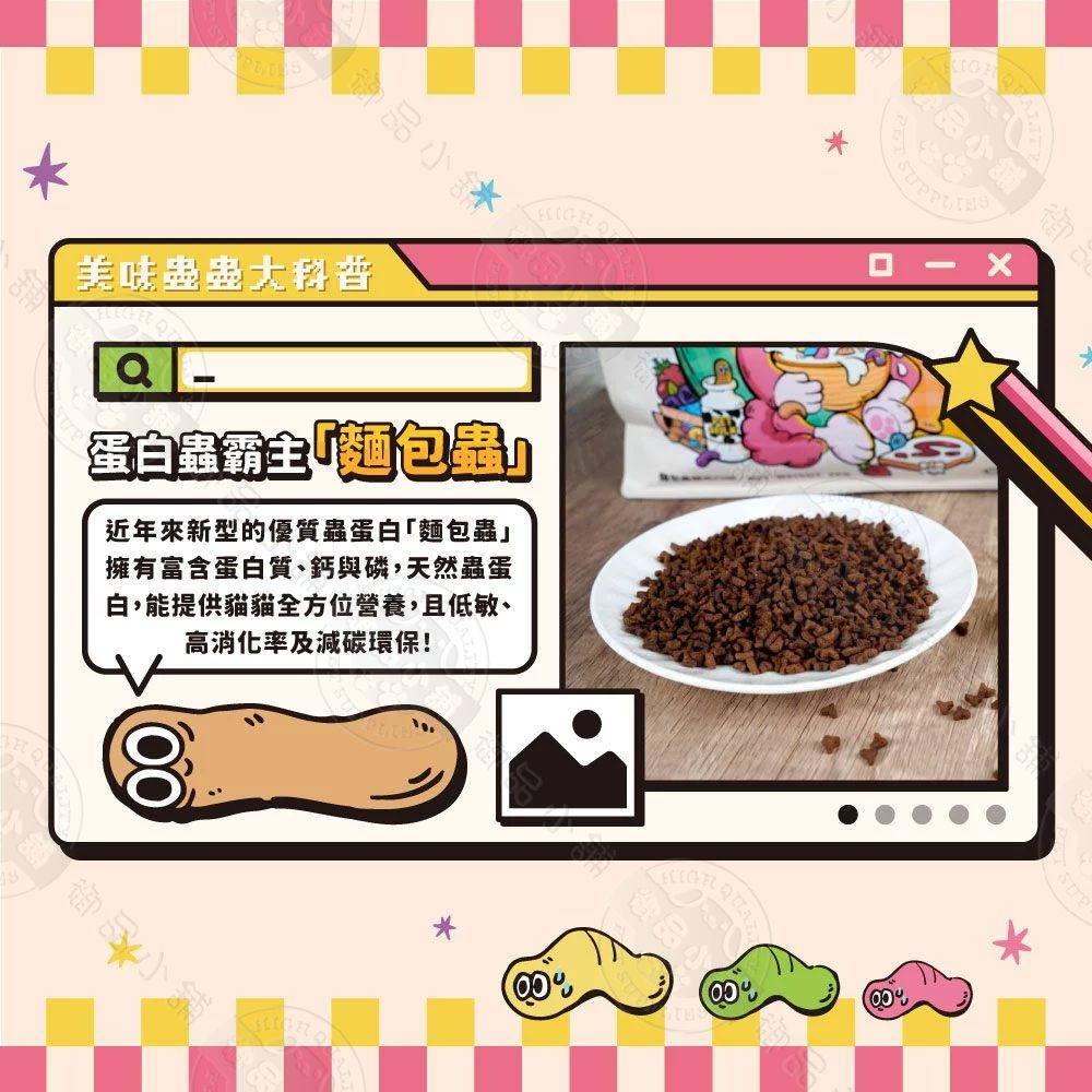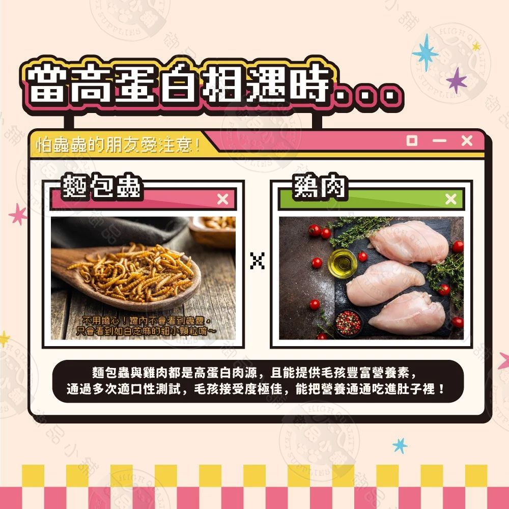 ✔ 新型麵包蟲肉源,低過敏、高蛋白,提供豐富營養