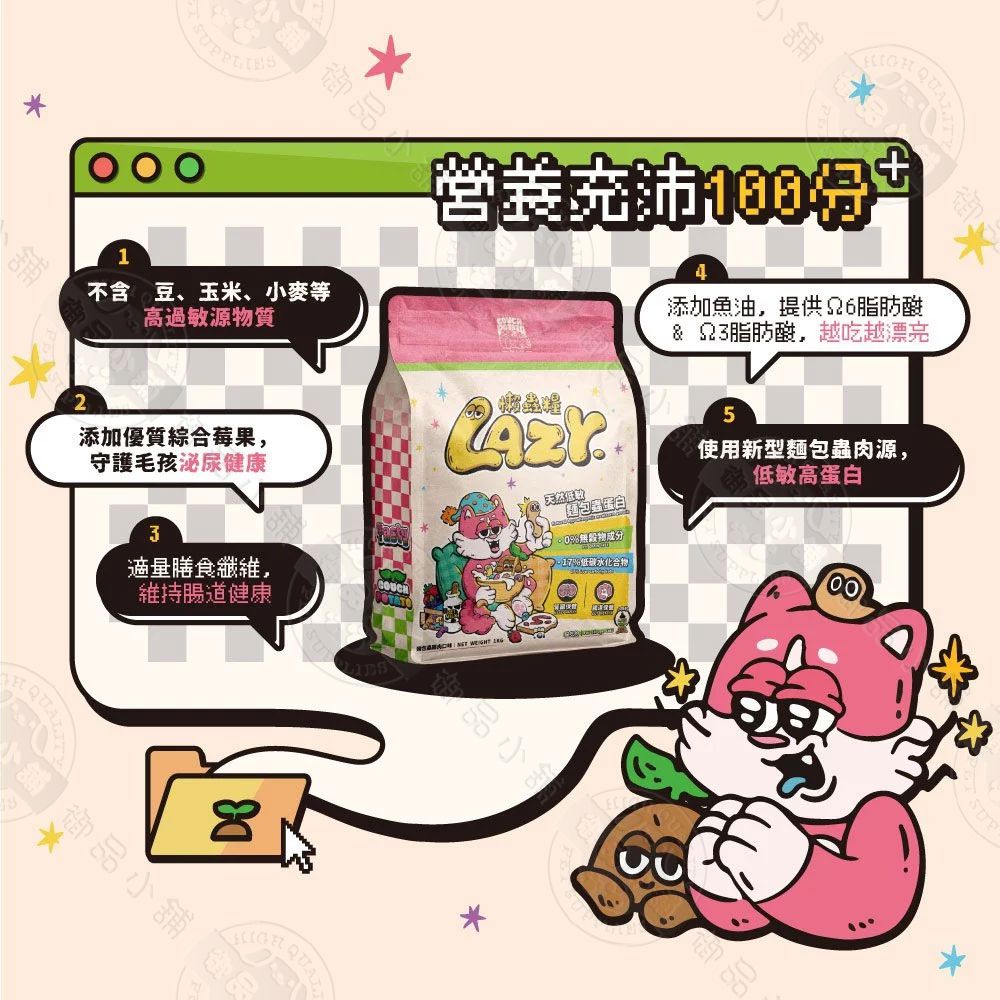 ●品名:Lazy懶蟲無穀乾糧(貓)