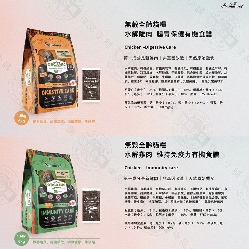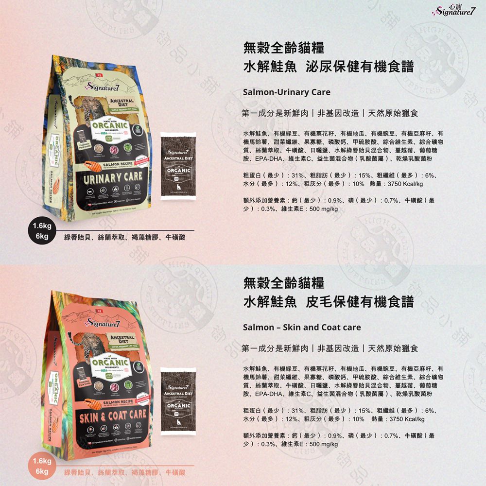 Signature7 心寵 無穀水解全齡貓糧 雞肉鮭魚 1.6/6kg 腸胃 泌尿 皮毛保健 維持免疫力 貓飼料 送贈品